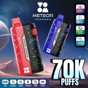 The Voom Meteor 70K Puff Disposable is a powerful and versatile vape device designed for users who demand long-lasting performance without sacrificing quality. Featuring a generous 20ml e-liquid capacity and a robust 1000mAh rechargeable battery with Type-C charging, this high-puff disposable vape is built to deliver up to 70,000 puffs, making it one of the best in its class.